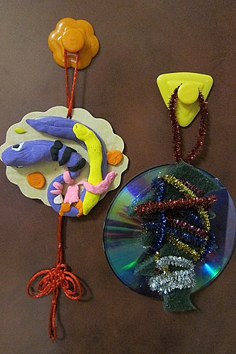 休息時間,左邊是鳥的剪紙,右邊是"放羊的小孩"。