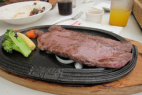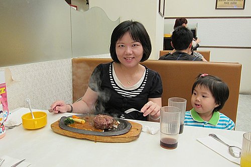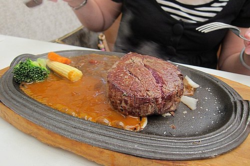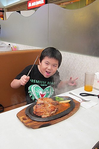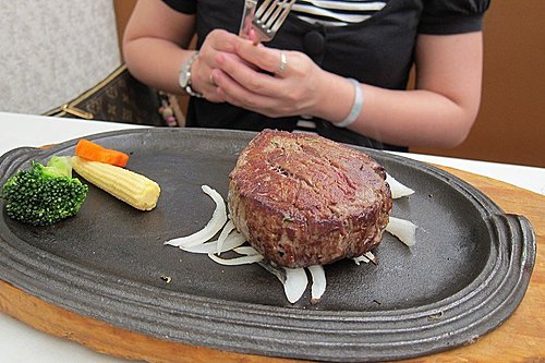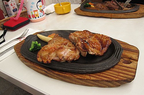 媽咪的菲力牛排,鐵板5分熟,厚切,好吃耶,這個下次我還會點。