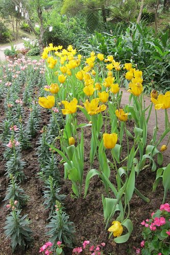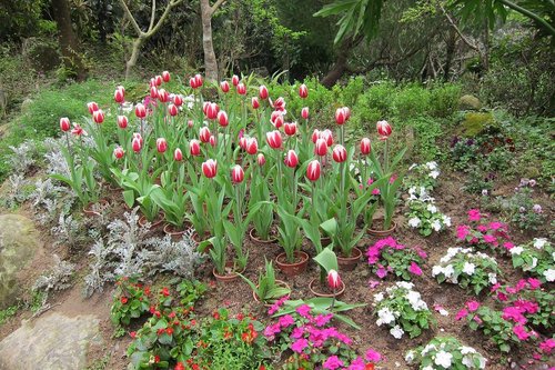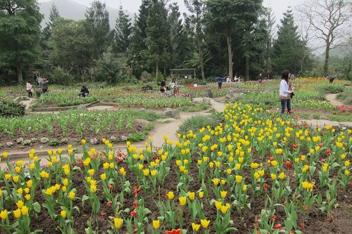往鬱金香花田方向前進,小徑漸次向上,夾道的植物也是多有不同。