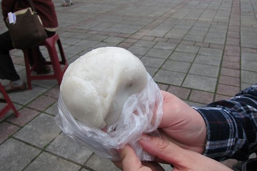 我們買了一個客家菜包來吃,還不錯吃喔。