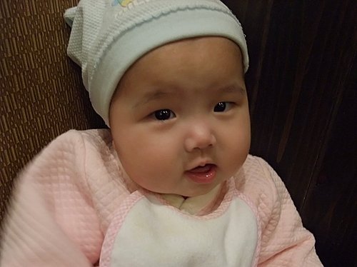 媽咪給你戴帽子,免得你像小沙彌。