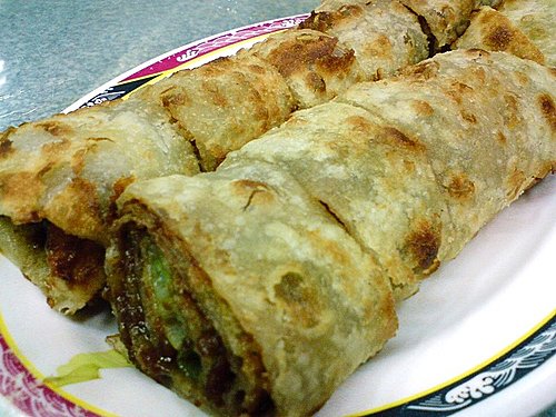 "牛肉大餅"是每桌客人必點的佳餚,有來吃的話不要錯過這道,因為麵皮不乾、香甜有咬勁,捲起牛肉和青蔥真是讚啊。