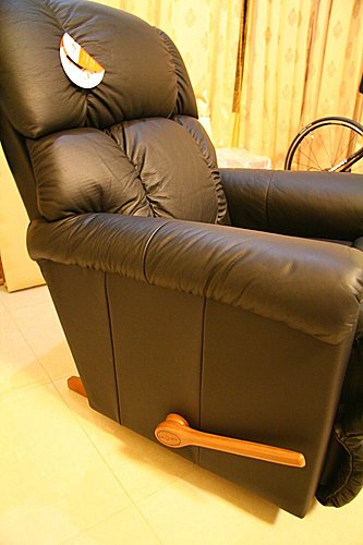 也是可以躺的喔! 拉柄做成隱藏式的,在扶手裡,也是很舒服,雖然向後傾的角度沒有LA Z Boy那麼大,但也是100分啦!
