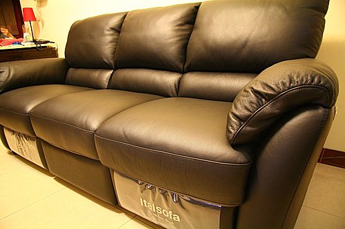 接著就是這厚實的三人座Italsofa沙發;這是義大利Natuzzi的副牌--Italsofa,雖然不像百分百義大利製品的Natuzzi,而且是對岸生產的;不過,因為有品牌支撐,我們判斷這品質還算不錯,將就將就啦。