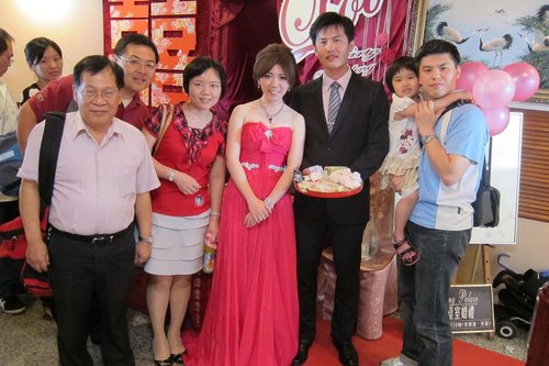 跟新郎新娘來一張,哈哈,新郎還配合我們站低一點,畫面協調些。